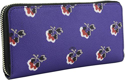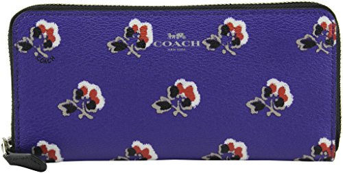 Coach Women's Slim Accordion Zip In Bramble Rose Print Canvas Wallet, Style F56732, Silver Purple