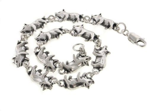 -. Title : Detailed Little Pigs Sterling Silver Pig Link 7" Bracelet