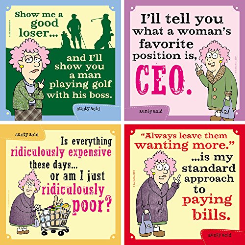 Tree-Free Greetings Hilarious Aunty Acid Magnet 4 Piece Set, 3.5 x 3.5 Inches, Golf With Boss Magnets (FM31204)