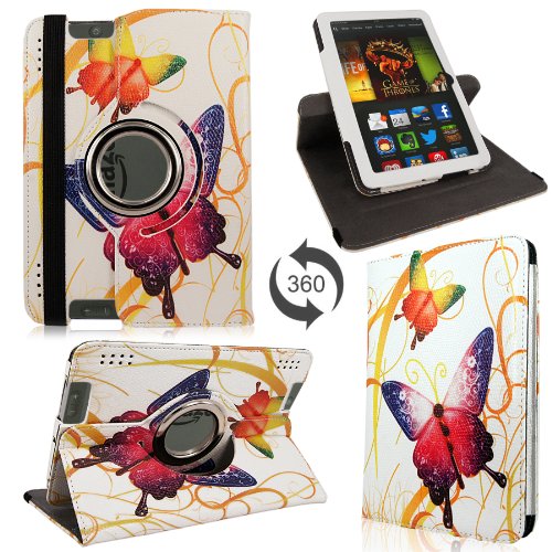 Protect your Amazon Kindle Fire HD 7" inch 2012 with 360 Degree Rotating Pu Leather Case. Rotates 360 degrees in the case for flexible landscape and portrait viewing. This case made from faux leather with classy design and the interior is lined with non-scratch material so you don't need to worry about any damages. Comes with a strap for a secure closure. Because the cover is uniquely designed to flip back and transform the case into a comfortable viewing stand, this capability allows the viewer to use the iPad hands-free whatever your position may be without strain. All features of your tablet are accessible even with the case on it. It even includes a camera hole so you can take pictures and videos without removing it. Watch movies and listen to music clearly with speaker holes! The compact structure of the case offers convenient mobility so you can just grab your tablet and be ready to go knowing it will be protected at all times.