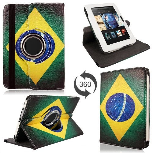 Cellularvilla Case for Amazon Kindle Fire HD 7" inch 2012 Brazil Flag 360 Degrees Rotating Pu Leather Flip Folio Stand Case Cover