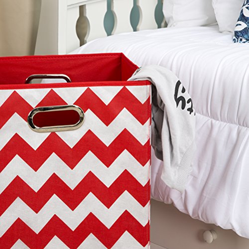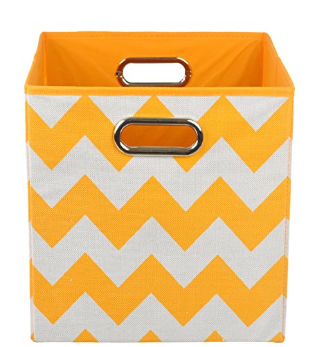 -. Feature : Sturdy cardboard insert with canvas cover / Bold black and white chevron motif / Built-in handles for easy carrying / Folds flat for storage when not in use / Dimensions: 10.5L x 10.5W x 10.5H in.