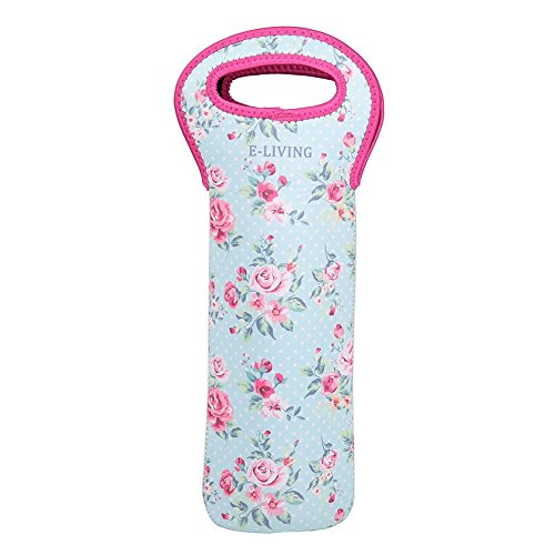 E-Living Neoprene 3-in-1 One Bottle Wine Tote for Champagne / Wine / Beer Bottles – 4 Designs (I Love USA / White Dots / Sweet Wedding / Vintage Roses) (3, Vintage Roses)