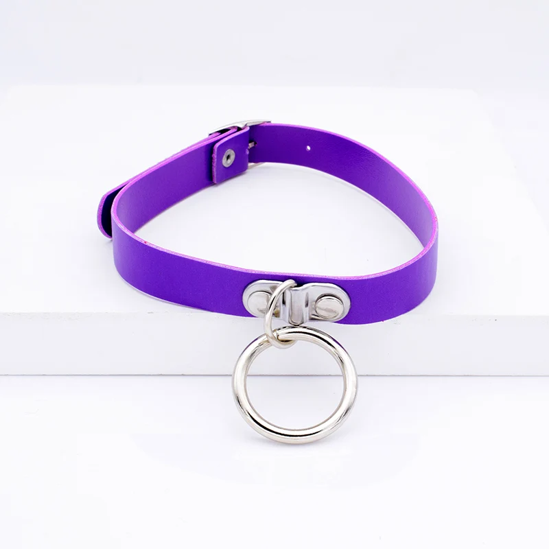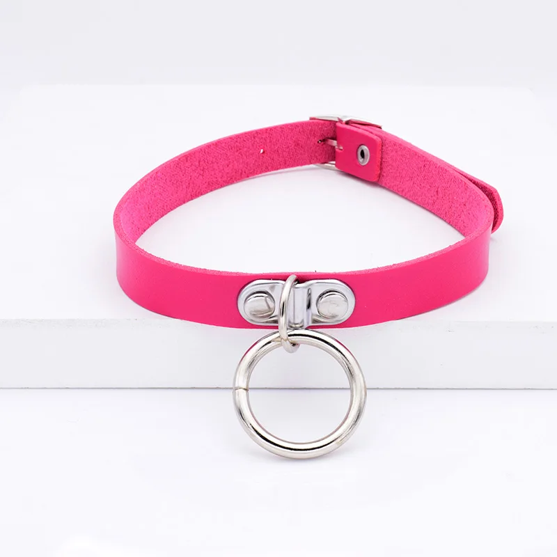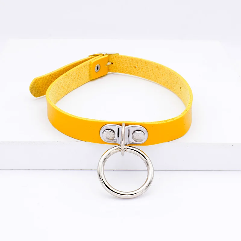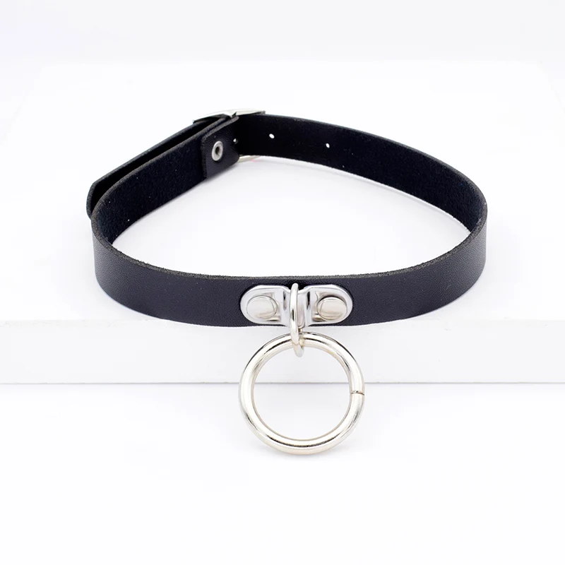 Name:Punk Big Metal Hoop Pendant PU Leather Choker Necklace For Women
