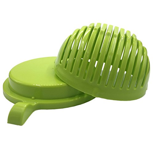 - MULTIFUNCTION and SAFE: Our salad cutter bowl consist of salad cutting pedestal and salad chopping bowl. The pedestal can instead of chopping board. The bowl with groove - standard on bowl salad, can use to wash and cut your fruit or vegetable. With this salad cutter chopper, you can cut vegetable or fruit in 60 seconds without too much strength, Never worried about cutting your fingers, cause you only need to cut along with several groove of the bowl which has prevent slippery effect.