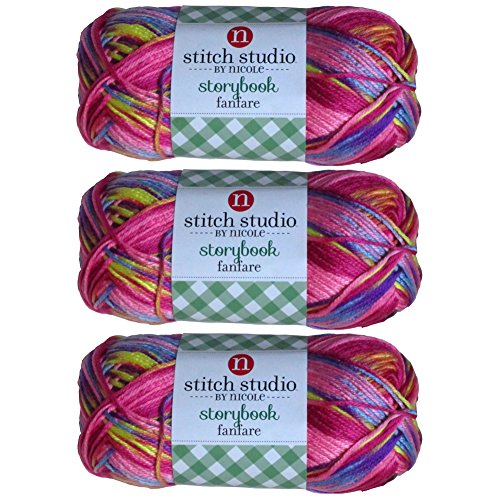 Stitch Studio Yarn by Nicole, Storybook Fanfare (3 Skeins) Ribbon Candy Pink