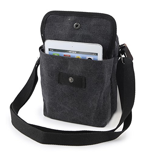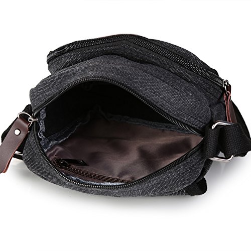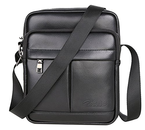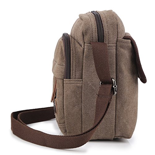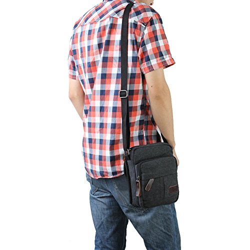-. Title : Zicac Men's Retro Small Genuine Leather Canvas Cross Body Messenger Bags Satchel Shoulder Bag