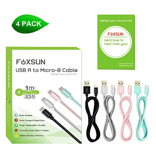 -. Title : Micro USB Cable, Foxsun [4-Pack] Nylon Braided High Speed Charging Cable/Data Sync Cord for Android, Samsung Galaxy, HTC, LG, Nokia, Sony,Tablet Smartphone and More …