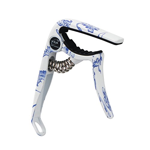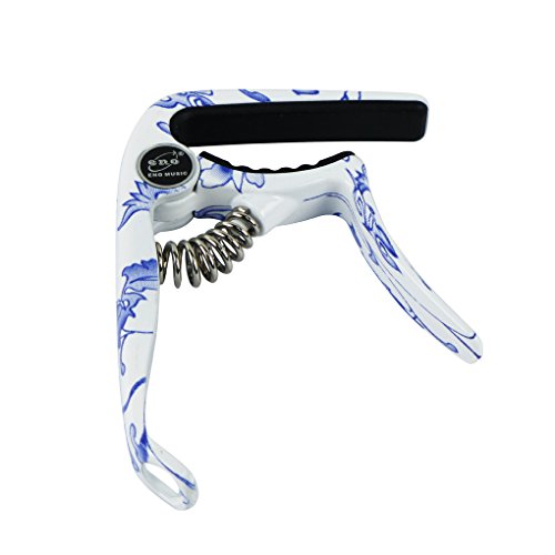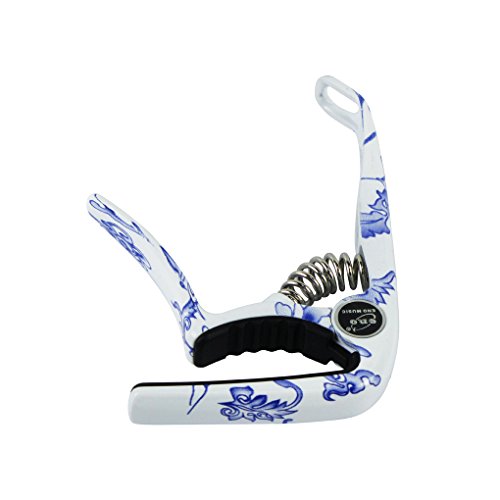 Product Description Feature:* The capo has a great performance for all kind of guitar,can clamp firmly onto most fretboards without buzz or loss of tuning.* With smooth surface and ergonomic handle,it is made of high quality PVC Plastic, lightweight but durable.* Strong spring is made of stainless steel,with great acid resistance,will help hold all of the strings down.* Soft silicone padding helps to protect the strings and fretboard without compromising on the quality of pitch and tone.* Easy to use,quickly and easily released and repositioned without disturbing the tuning. Can be repositioned with just one hand.Including one string pin puller at the end of the handle, which can help you to remove string pins without making damage to your guitarSpecification:Fits for all kind of electric, acoustic and classical guitarMaterial: High Quality Metal Zinc Alloy with steel spring soft silicone pad.Color: Blue and White ChinaPackage include:1 x Packaged Guitar Capo 0