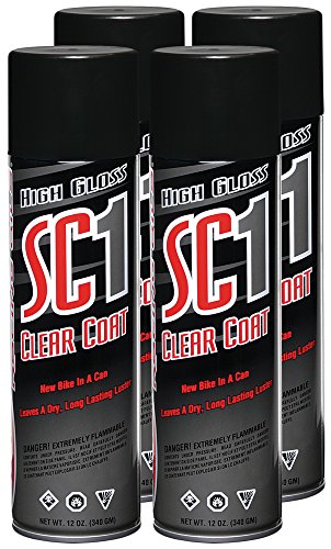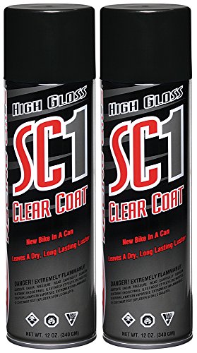 High gloss SC1 Clear Coat is specifically formulated for the Powersports industry. SC1 coats plastic, fiberglass and painted surfaces. Makes the clean up process easier - excellent for use on M/C and ATV fenders to prevent mud and dirt from adhering to plastic. SC1 is water resistant and leaves a dry, long lasting luster and shine. CAUTION: Flammable. Do not spray near open flame. FEATURES: Fresh Clean Scent; Restores factory shine and color; Leaves a dry, long lasting luster. 2-Pack Contains a total of 2, 12 Ounce Aerosol Cans.