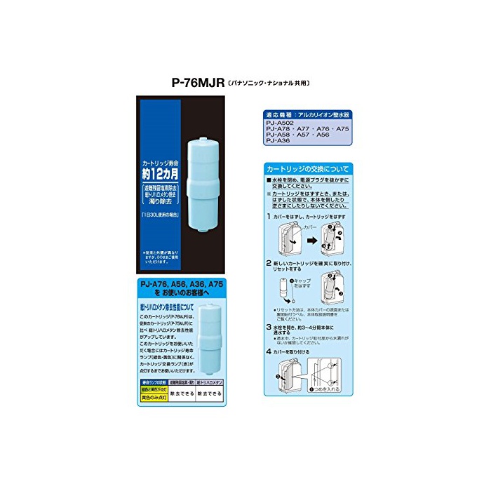 원본상품명: パナソニック 整水器カトリッジ アルカリイオン整水器用 1個 P-76MJR