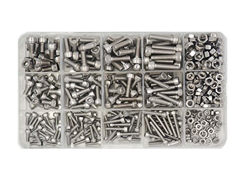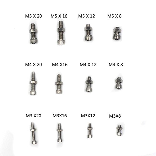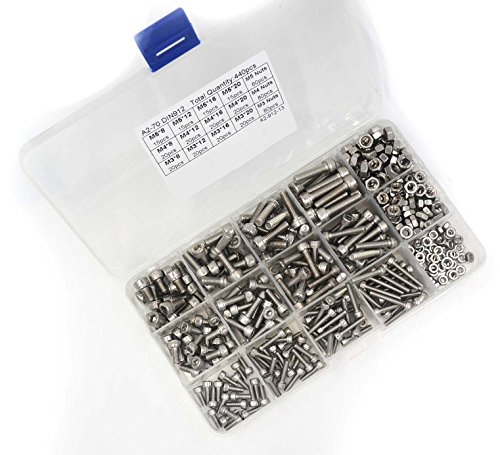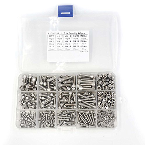 HANLUR 440pcs M3 M4 M5 Stainless Steel Hex Socket Head Cap Screws Nuts Assortment Kit with Box