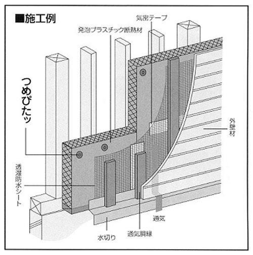 断熱材の固定に悩んでいませんか?つめぴたッは断熱材に差し込んでビスを打つだけ。シッカリ固定できるから気密性が上がります。両面テープと違ってゴミも出ません。またビスで固定しているのでやり直しも容易です。おススメです。1箱500ヶ入。