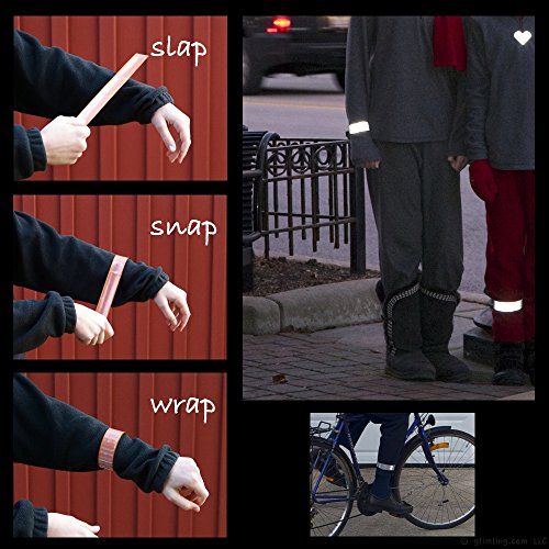 Click "Add to Cart" Button NOW to increase safety for yourself, your family and your friends! How to use them - The slap bracelets takes only seconds to attach. Straighten out and slap against your wrist or ankle. It will curl around by itself. - For good surround visibility, use at least two reflectors, for example one on each ankle or one on each wrist. - Wrap the bracelet around a strap on your backpack, bag or purse when not in use to have on hand at all times.