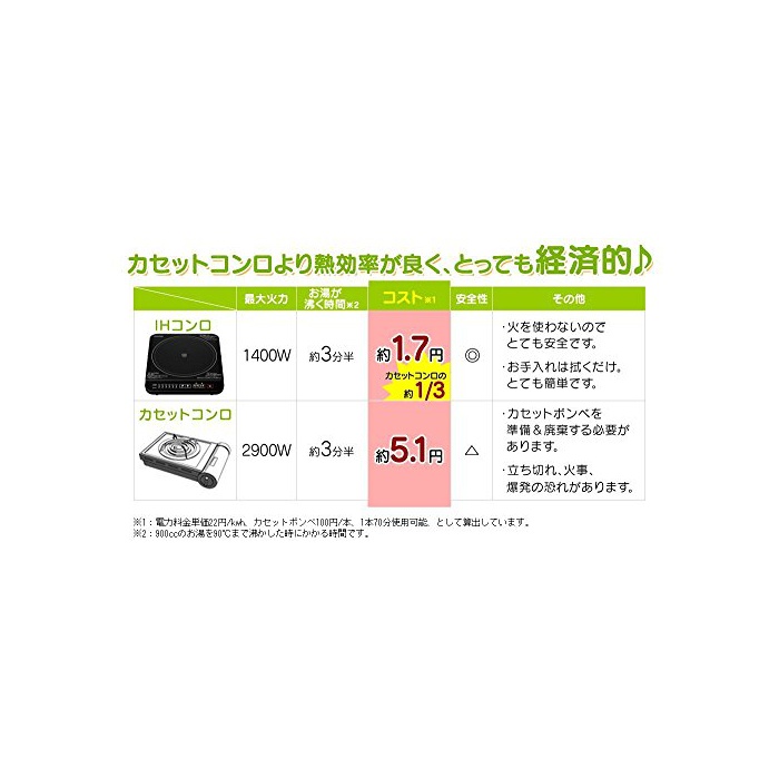 원본상품명: アイリスオヤマ IHクッキングヒタ 1400W ブラック IHK-T31-B