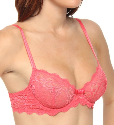 Lace demi bra with scalloped trim, underwire support, and plunging center