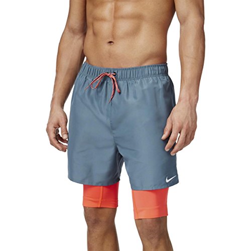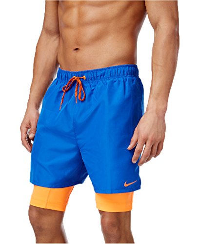 Brand: Nike Style Number: NESS6392 Category: Swim Bottoms Style: Swim Trunks Country of Manufacture: Indonesia Gender: Mens Fastening: Laced Closure Material: 84% Polyester 16% Spandex Features: Drawstring(s),Front Pocket(s) Pattern: 2-Tone Occasion: Athletic Performance: Swimming