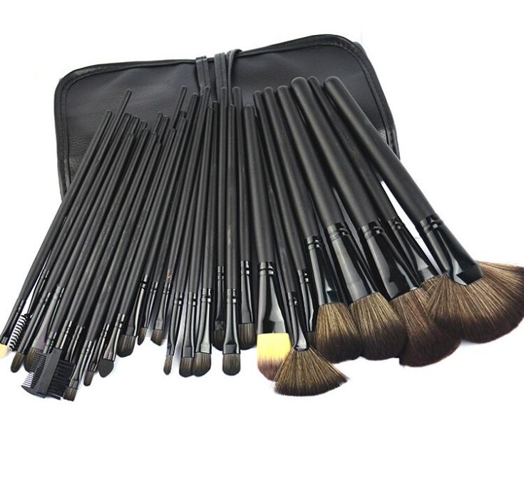 High Quality Professional 32 PCS Cosmetic Facial Make Up Brush Kit Wool Makeup Brushes Tools Set Brush With Black Leather Case