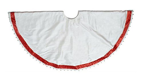 Arcadia Home Ivory Silk Christmas Tree Skirt with Red and Silver Herringbone Border