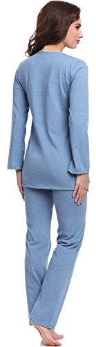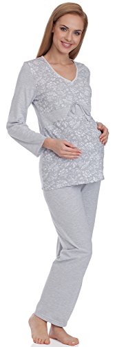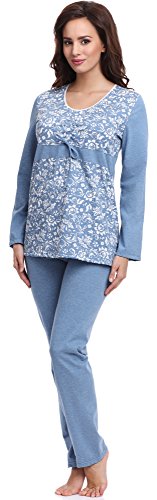 -. Binding : Textilien -. Brand : Be Mammy -. Department : Damen -. Feature : Pyjama für schwangere Frauen; Lange Ärmel; Lange Hose; Dekolletee mit V-Ausschnitt / Hose und Oberteil passen sich dem wachsenden Bauch an; Sehr bequem / Aus 100 % weicher, atmungsaktiver und angenehmer Baumwolle / In der EU hergestellt -. IsAdultProduct : 0 -. ProductGroup : Apparel -. ProductTypeName : SLEEPWEAR -. Title : Be Mammy Damen Umstands Pyjama BE20-118