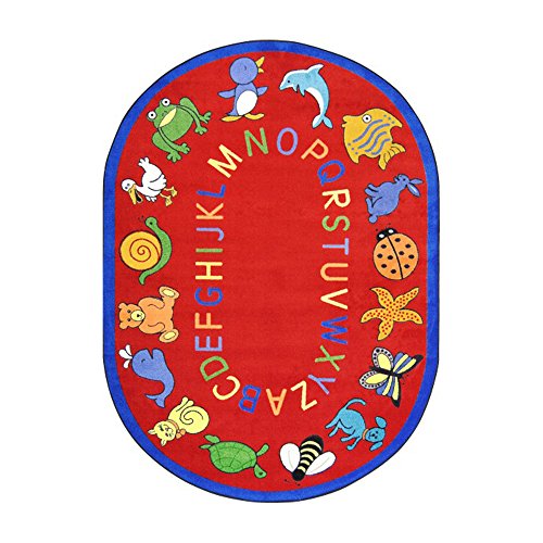 Joy Carpets Kid Essentials Early Childhood Oval ABC Animals Rug, Red, 5'4" x 7'8"