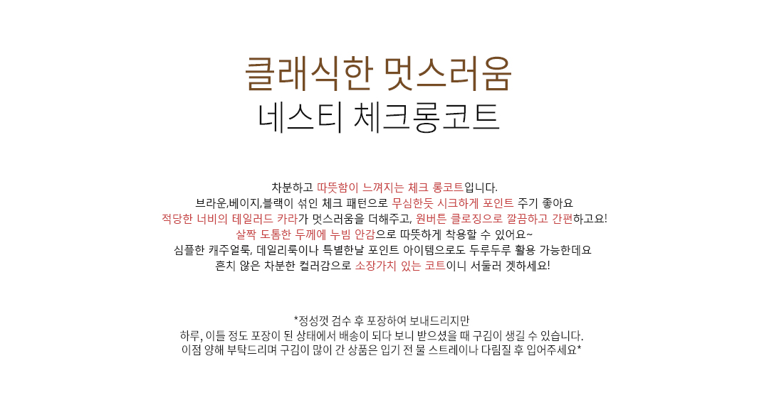 배송 받으실 때까지 예쁜 핏 그대로 받아 보실 수 있도록 카라 부분을 실로 고정하거나 주머니를 막아 놓은 부분이 있습니다.