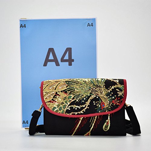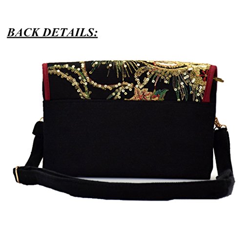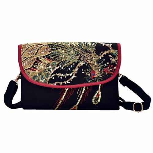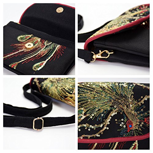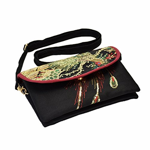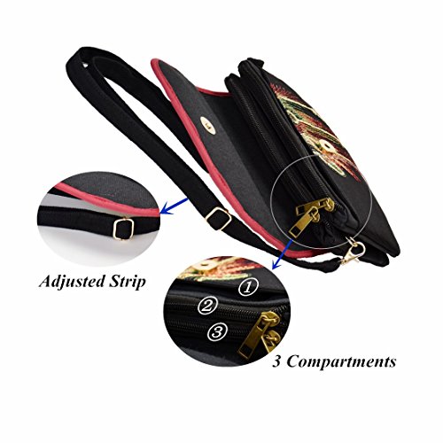 Functional Mutil-Pocket Embroidery Crossbody Bag with Adjustable Strap