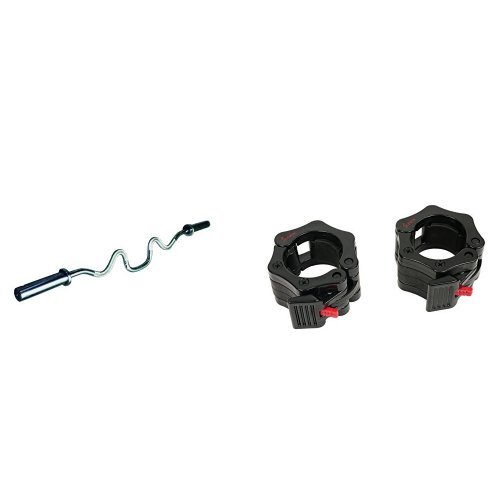 Sunny Health Fitness 48" Olympic Super Curl Bar with Shark Clamp Lock Collars for Olympic Barbells