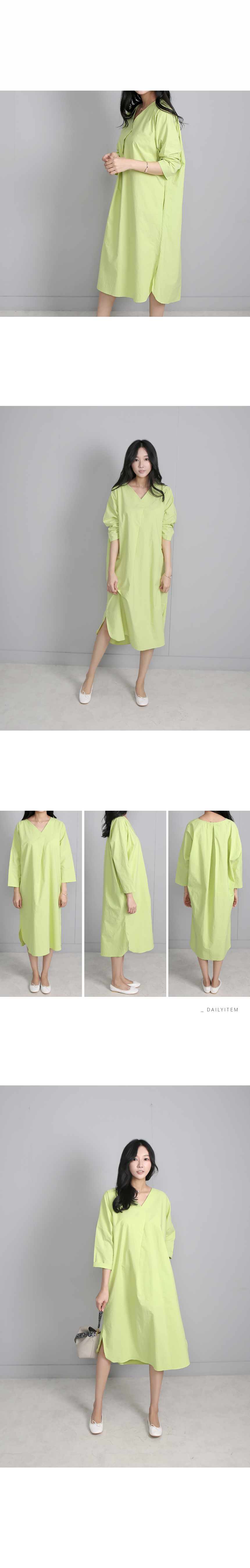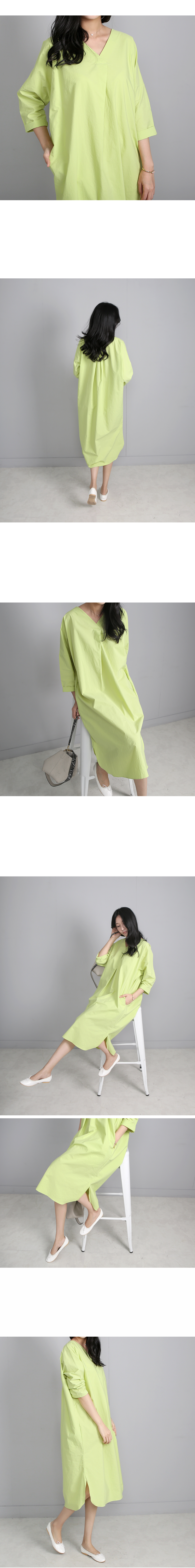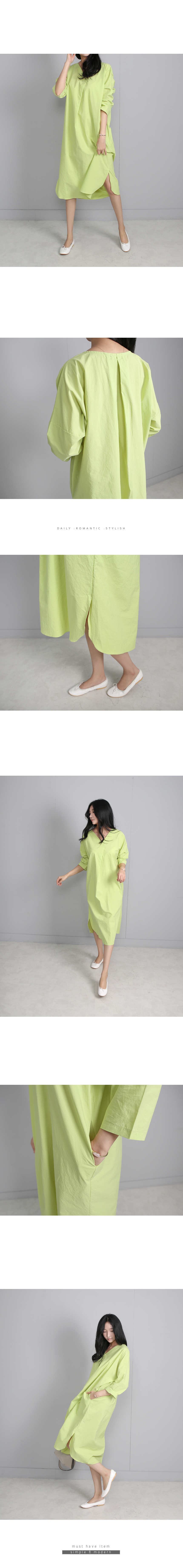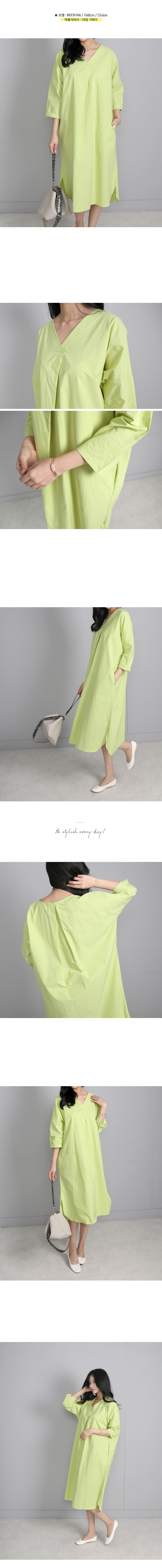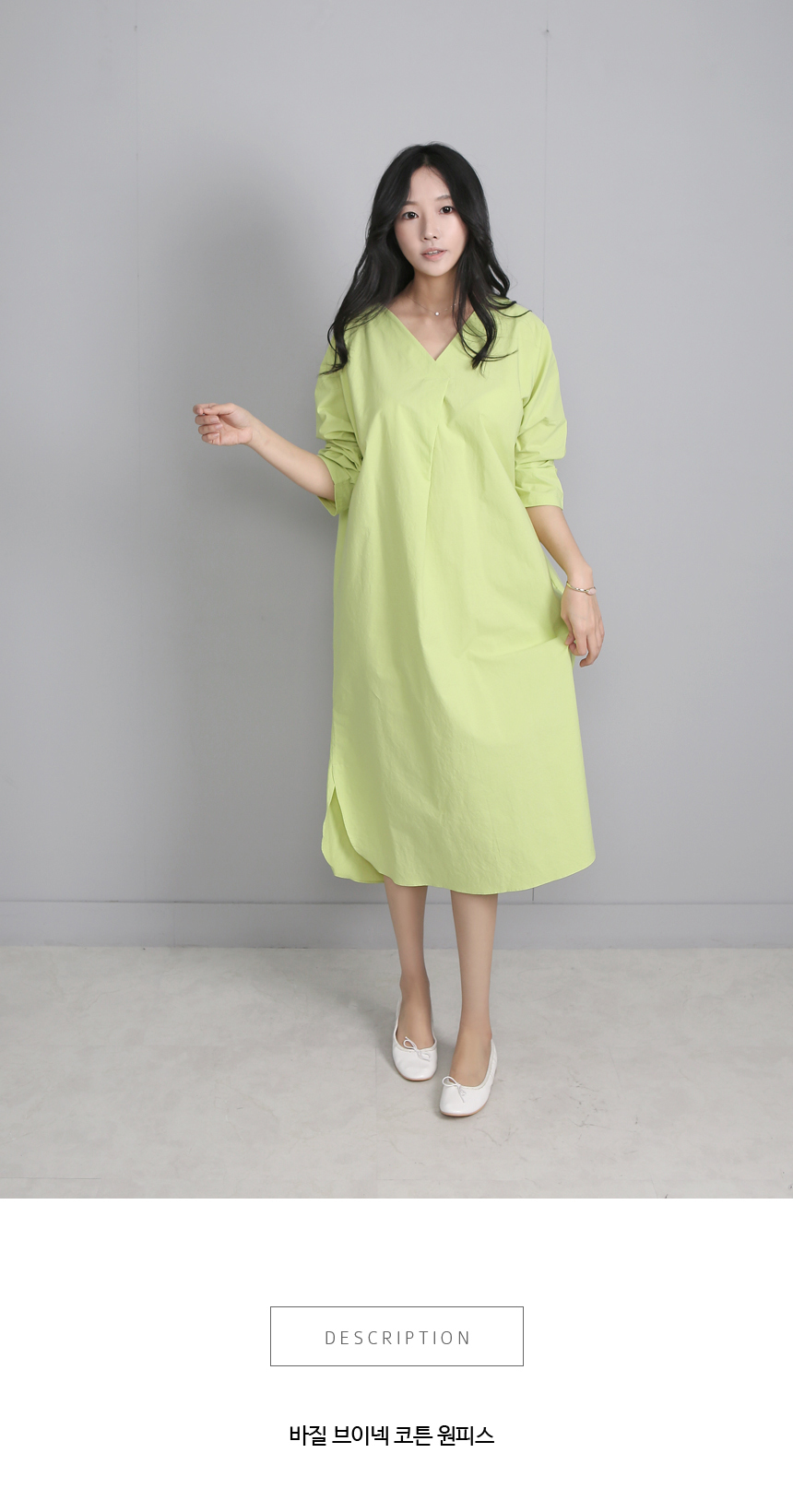 샤이니한 라임컬러와 시크한 네이비컬러로준비한 차분한 디자인의 브이넥 오버핏 원피스에요바삭한 코튼 소재로 살짝 파진 브이넥이 우아하고겹쳐지며 떨어지는 앞중심의 디자인과뒷중심에서 맞주름으로 떨어지는우아한 코쿤라인의 둥근핏이 고급스러워요무릎을 덮는 롱한 길이감과 둥글리며떨어지는 밑단이 전체적으로우아하고 부드러운 느낌의 원피스에요소재는 코튼100%색상은 라임, 네이비사이즈는 FREE 44~77