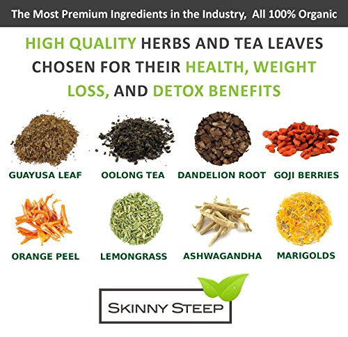 -. Binding : Health and Beauty -. Brand : SkinnySteep -. Department : unisex-adult -. EAN : 0702795220488 -. Feature : PREMIUM INGREDIENTS: The most premium ingredients in the industry, all 100% organic. Nothing machine ground, only whole pieces of exclusive herbs and tea leaves that are blended by hand in the USA. / WEIGHT LOSS RESULTS: Our professionally developed formula is proven to boost metabolism and suppress hunger. It's why we have thousands of satisfied REAL customers. / DETOXIFY YOUR SYSTEM: Contains ingredients shown to naturally flush toxins from your system. / REDUCE BLOATING: From the very first cup you'll notice less bloating and a flatter looking belly. / NON-LAXATIVE: Provides natural detox and digestion support without any laxatives. -. IsAdultProduct : 0 -. Label : SkinnySteep -. Manufacturer : SkinnySteep -. MPN : DS100 -. PackageQuantity : 1 -. PartNumber : DS100 -. ProductGroup : Health and Beauty -. ProductTypeName : HEALTH_PERSONAL_CARE -. Publisher : SkinnySteep -. Studio : SkinnySteep -. Title : Organic Slimming Diet Tea by SkinnySteep with Guayusa Leaf - Natural Skinny Tea with Proven Weight Loss and Belly Flattening Results - Made in USA with Ultra-Premium Ingredients - 1 Month Supply -. UPC : 702795220488