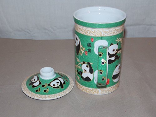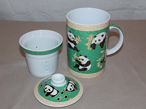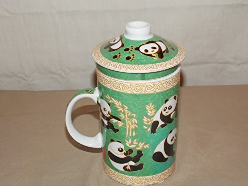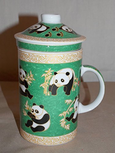 -. Brand : GE -. Color : Multi -. EAN : 0740843100665 -. Feature : Material: Porcelain / Size: 4.5" tall cup / 6" tall with lid and filter in place x 3" diameter / Volume: 12oz -. Label : E.G. -. Manufacturer : E.G. -. PackageQuantity : 1 -. ProductGroup : Kitchen -. ProductTypeName : KITCHEN -. Publisher : E.G. -. Studio : E.G. -. Title : 3pc Porcelain Green Panda Tea Mug Cup with Infuser and Lid -. UPC : 740843100665