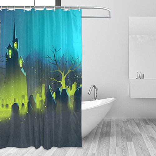 -. Title : JSTEL Decor Shower Curtain Spooky Castle Halloween Cemetery Night Pattern Print 100% Polyester Fabric Shower Curtain 60 x 72 Inches for Home Bathroom Decorative Shower Bath Curtains