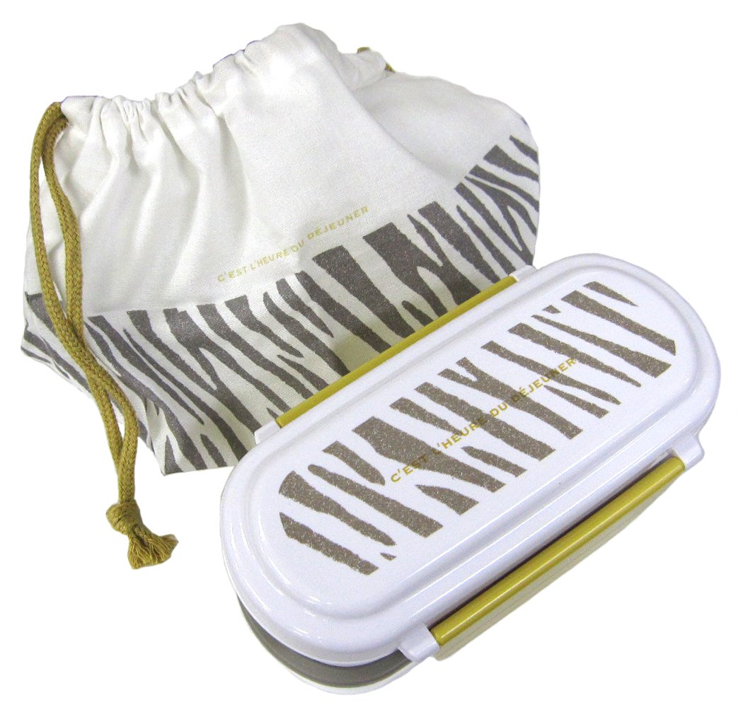 OSK Soft Animal Zebra Cold Lunch (Bento) Box 2 Tier with Bento Bag and chopsticks [Import from Japan]