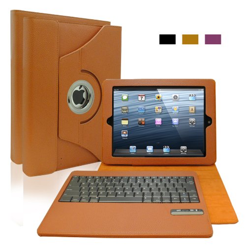 -. Title : KHOMO ® Brown Leather 360 Degree Case with DETACHABLE Bluetooth Keyboard for Apple iPad 2 , iPad 3 & iPad 4
