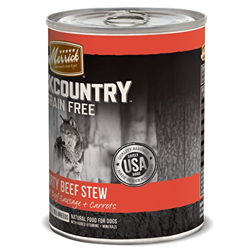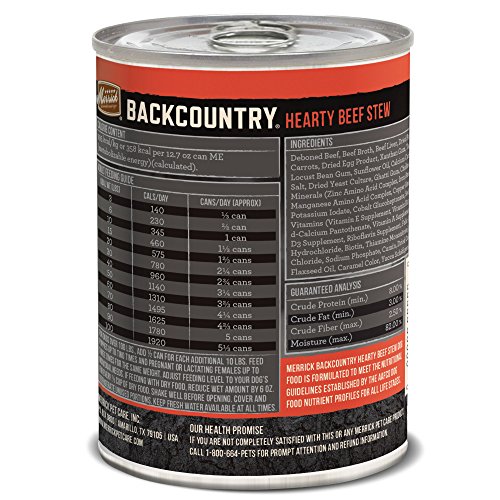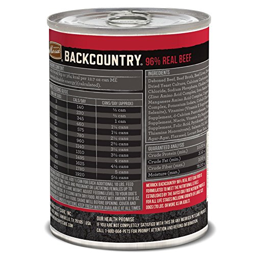 -. Binding : Misc. -. Brand : Merrick -. Label : Merrick Pet Care -. Manufacturer : Merrick Pet Care -. PackageQuantity : 1 -. ProductGroup : Pet Products -. ProductTypeName : PET_SUPPLIES -. Publisher : Merrick Pet Care -. Studio : Merrick Pet Care -. Title : Merrick Backcountry Grain Free Wet Dog Food, 12.7 oz, 12 count
