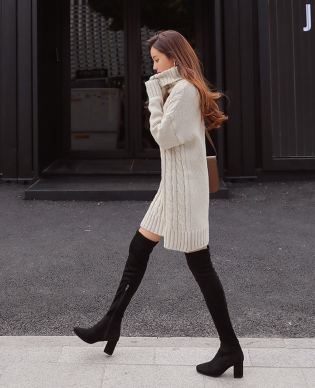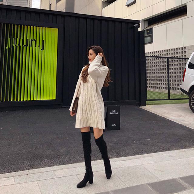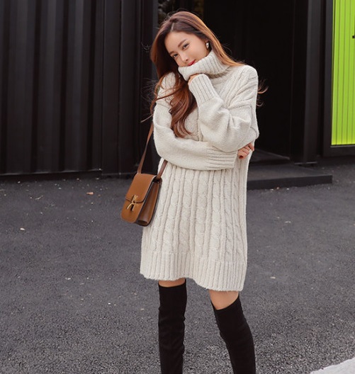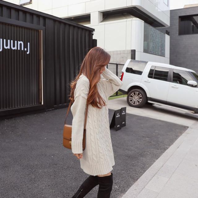 タートルネックがおしゃれなニットワンピ?