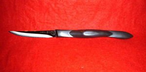 CUTCO MODEL 1798 MINI TRIMMER KNIFE .............HIGH CARBON STAINLESS 3.5" DOUBLE-D® SERRATED EDGE BLADE WITH 5" CLASSIC DARK BROWN HANDLE (OFTEN CALLED "BLACK")........IN FACTORY-SEALED PLASTIC BAG.