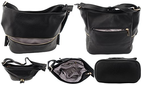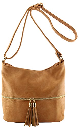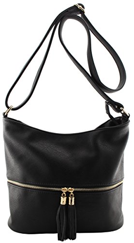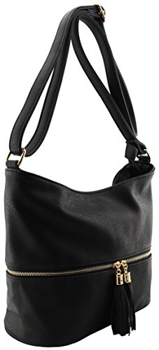 -. Feature : Soft, Slouchy, Roomy hobo shoulder handbag with adjustable cross body strap / Size: 10.75"(L) x 5.5"(W) x 9.75"(H) with 27.5" drop max(15.5" drop min) / Tassels detail on the front pockets with gold tone hardware / Front zipper pocket, back zipper pocket, top zipper closure pocket, inside zipper pockets and 2 inside open pockets / Psalm 119:105 Thy word is a lamp unto my feet, and a light unto my path.