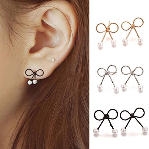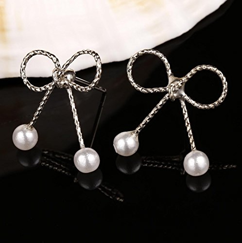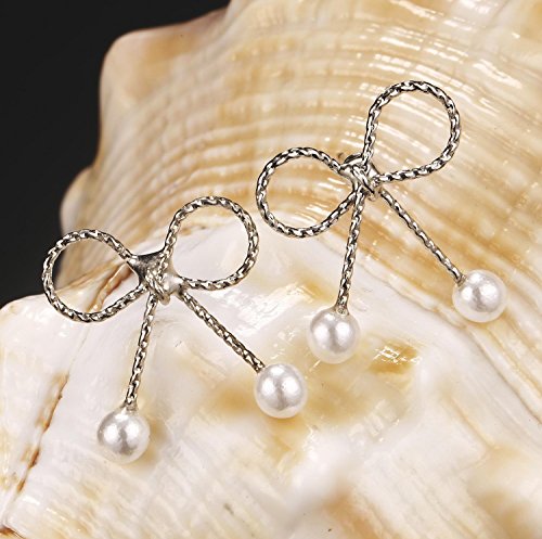 Kaluo Women Butterfly Bowknot Stud Earrings Jewelry Faux Pearls