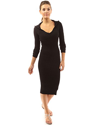 Cotton Blend Hoodie Cable Knit Casual Party Sweater Long Maxi Dress. Model in pictures is 5 feet 8 inches (173cm) tall.