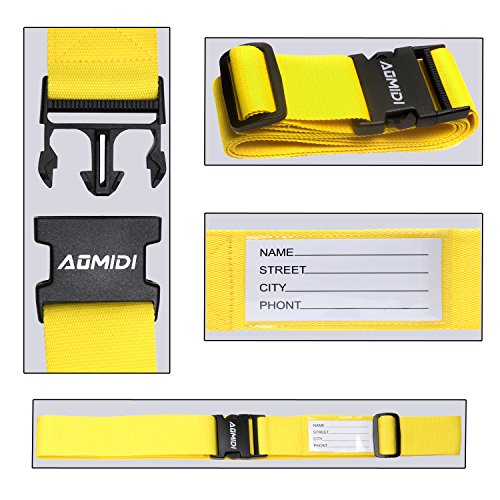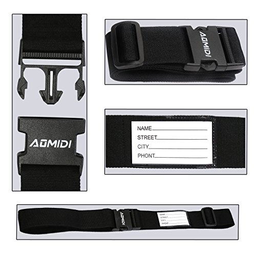 Product Description Aomidi luggage strap is a best gift for businessman and travellers. Buckle made of durable poly plastic material.We ensure that not snap when bent inward or outward! Strap size: Length:43"-78"inch; Strap Width:2"inch.Universal luggage strap used for 20"-32" suitcase. Strikingly color luggage straps will help you to differentiate the luggage easily, save time, happy travel! Heavy duty luggage strap, secure buckle closure ensures security, the belt can be adjustable. 0