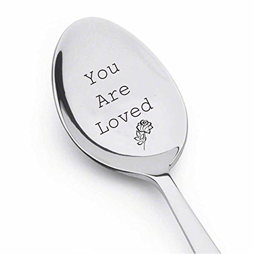 Studio : Boston Creative Company LLC Publisher : Boston Creative Company LLC Binding : Kitchen Product Description Coffee spoon or tea spoon your are loved spoon with rose - engraved spoon - special gift - special occasion spoon .This high quality stainless spoon engraved as ' you are loved' with rose 'using industrial standard engraving machine, so the impression will remain forever. Even after billion washes. Spoon size : 7 inches -table size spoon we are the manufacturers and we have sold more than 10000 spoons globally. We know what you like ,we have so many collections of gifts please check our other spoon designs and book art designs. 0