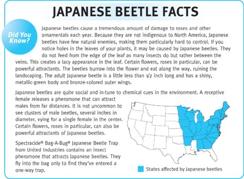 - Draws Japanese beetles into trap away from valuable ornamentals, flowers & shrubs