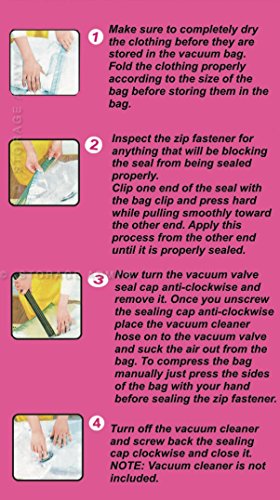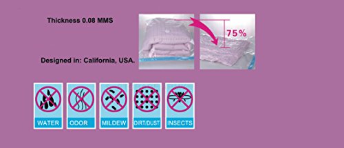 - Feature : Pack of 5 / Protects against Moths, Odors, Water, Bugs, Dirt/Dust and Mildew! Guaranteed airtight and watertight, New Double Zipper. Sure Zip Slider, Easy to Seal, 6 Months Warranty from Storage ArmyTM against Manufacture defects Sizes: Jumbo, 85cmx120cm / Airtight, Reusable and Waterproof, Bulky items stay compressed. / If you are not satisfied with your order, please contact us before leaving negative or neutral feedback. Thanks again for supporting our small business. / WHY BUY FROM US? Unlike any others vacuum storage bag, we only use durable and more flexible PA (Nylon) + PE Material compare to others using low cost PET + PA (Thicker material) which will crack overtime in result of air leaking. Thickness 0.08 MMS !!! Other sellers have 0.06 MMS which is not Durable !! Online lowest price from direct wholesaler. Our every storage bag comes with complete packaging with full instruction. Our storage bag is 10% larger in the same listing size compare to others. Double zipper seal for double protection on every bag. Super fast shipping by USA seller. We ship the item out the door in 1 day after the payment. The shipment will ship by USPS priority mail with tracking number in USA and Worldwide. Buy more and save on combine shipping discount. Check our other listings for additional sizes and quantity discounts