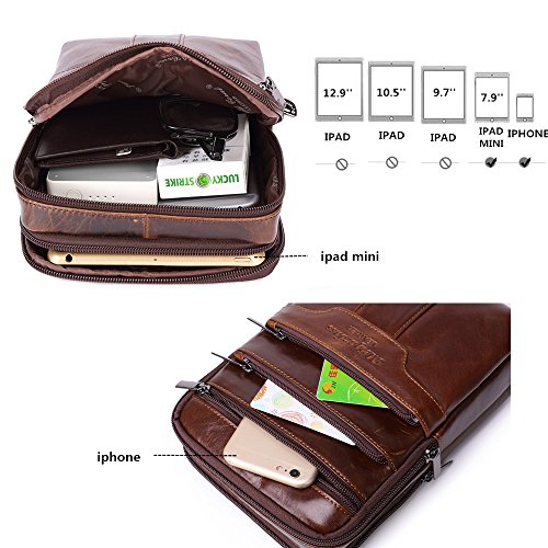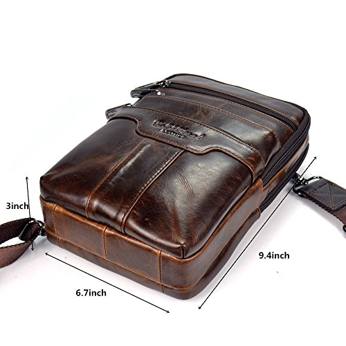 -. Feature : Imported / Material:100%genuine leather.Traditional manual craft, durable nylon thread sewing and excellent workmanship . / Size info: 17 x 8 x 24 cm (6.7 x 3 x 9.4 inch) Weight: about 1 pounds / Structure: 2 main zipper pockets, 3 front zipper pockets , 1 back zipper pocket .Keep all of your items organized on the go with this messenger bag! Adjustable strap with metal buckle (appr. 80 ~ 150 cm) you can have 3 carrying options (Single shoulder, cross body and hand carry) / Simple and fashionable, suitable for casual or formal carry.This spacious shoulder bag can hold all of your necessities for your every dayuse, wallet, camera, phone, passport, Kindle, iPad miniand miscellaneous items.