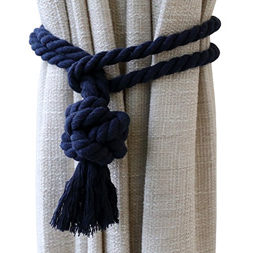 Shinywear Cotton Handmade Ball Knot Curtain Rope Tassel Vintage American Style Drapery Holders Ties,Set of 2 Pieces (Navy blue)