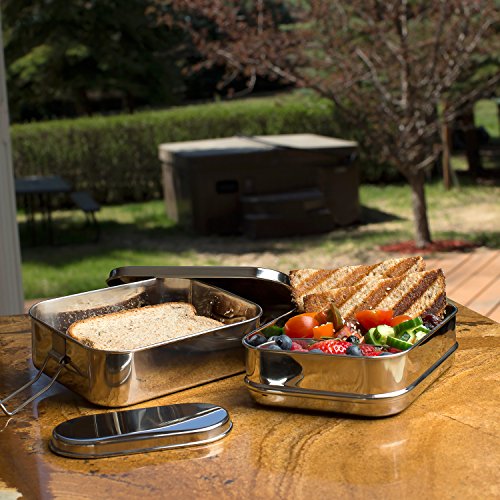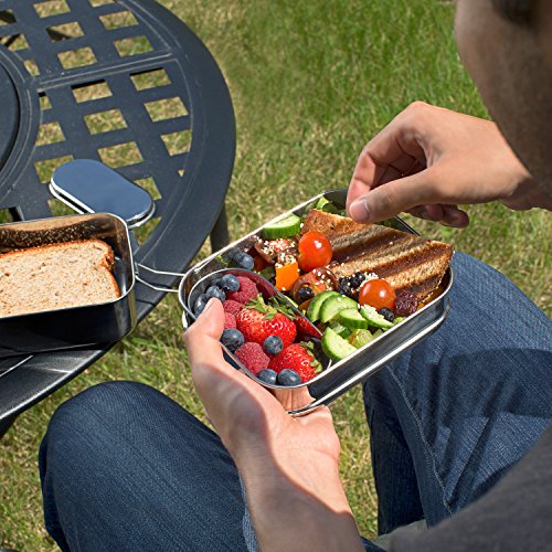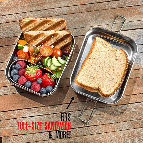 - *** TOP-GRADE STAINLESS STEEL: Don’t settle for a cheaply made knock-off! We don’t believe in cutting corners. We do things right – even if it costs us more to manufacture. We only use the highest quality 100% TOP-GRADE Stainless Steel in our lunch boxes. Our DURABLE Stainless Steel has been SPECIFICALLY-ENGINEERED for FOOD. Our lunch boxes will NEVER RUST or corrode (unlike others) and will easily withstand even the heaviest of usage for years to come!