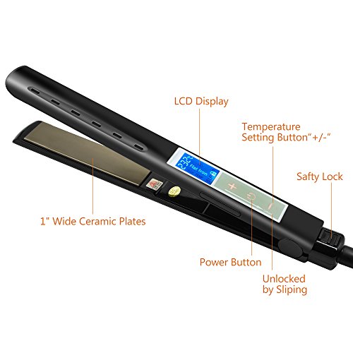 HIGH-GRADE TOURMALINE CERAMIC: Our Hair Straightener designed with 1-inch high-grade tourmaline ceramic plates for a snag-free glide and more even heating than traditional flat iron straighteners. Using the advanced MCH ceramic heater and far-infrared technology can straighten your hair and make it full of moisture quickly, protect hair from harm, leaves your hair shiny and silk smooth.