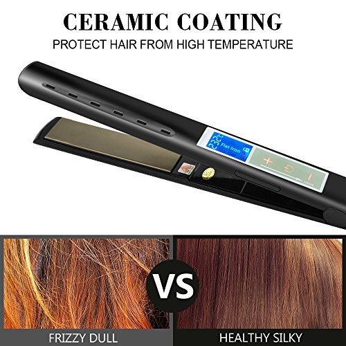 ADJUSTABLE TEMPERATURE: Touch screen operation and Convenient LED Temperature Display, Slide to Unlock. Simple two-button controls allow you to increase and decrease the heat to your desired level. Adjustable temperature setting from 50~232°C (122~450F) to suit all hair types. 270F-320F suit for fragile hair, 330F-380F for damaged hair, 390F-450F perfect for healthy hair type.