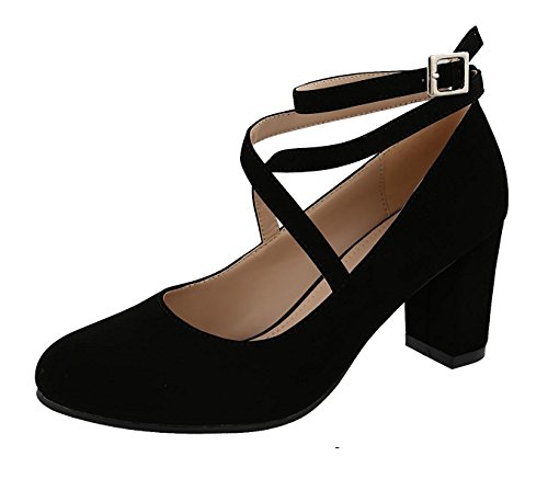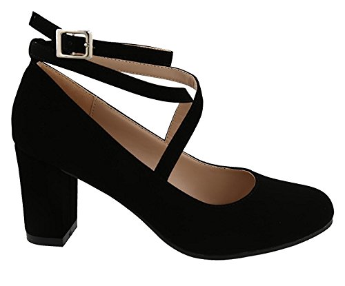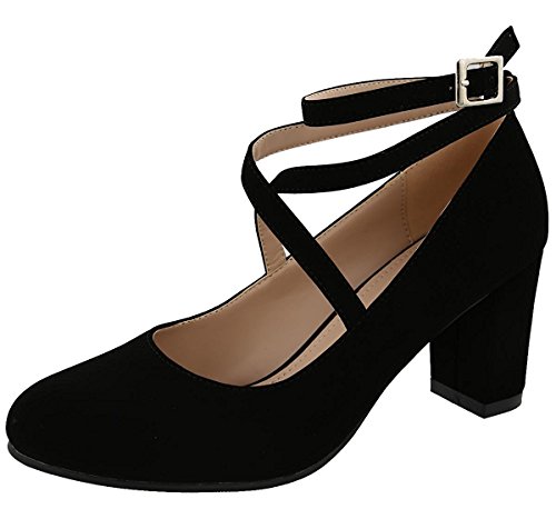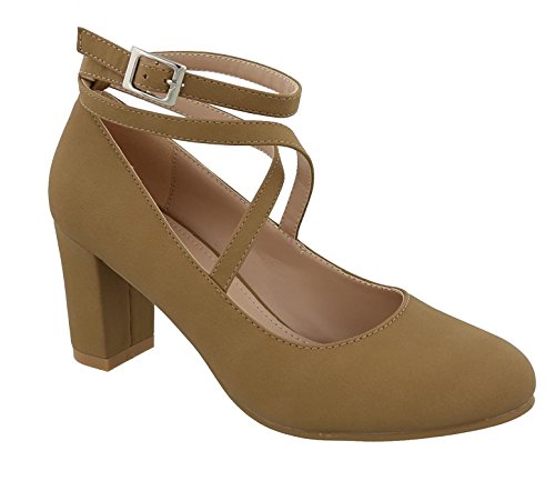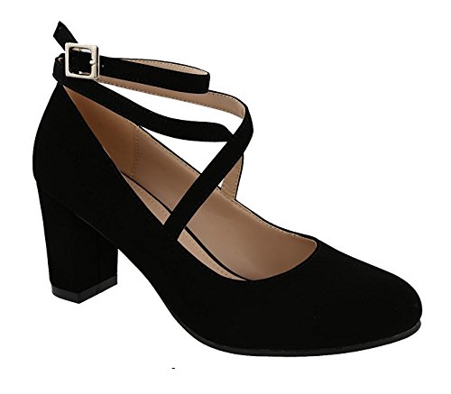 (Top Moda)/Women's/Pumps/DIRECT FROM USA/Top Moda elegant Women's close toe Stacked heel closed back Strappy nubuck pumps